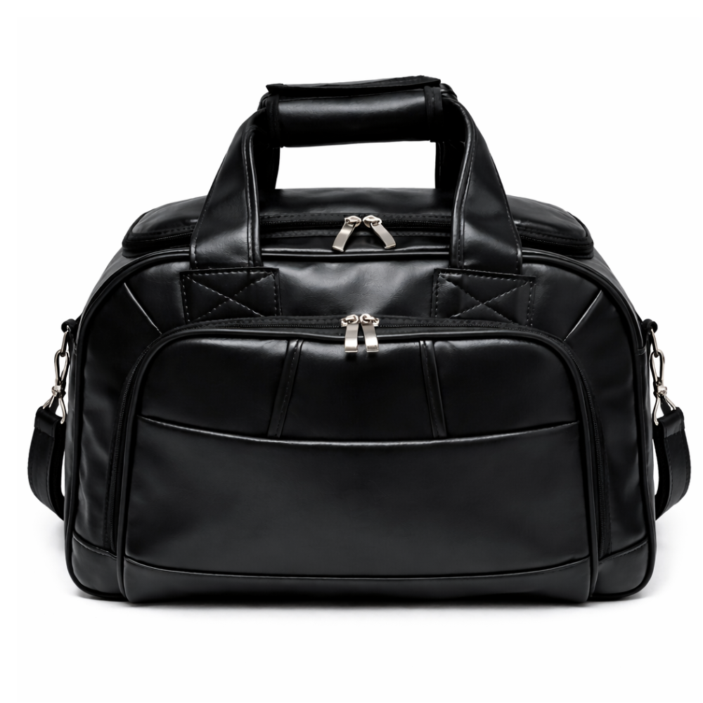 Bolsa premium em couro sintético resistente.